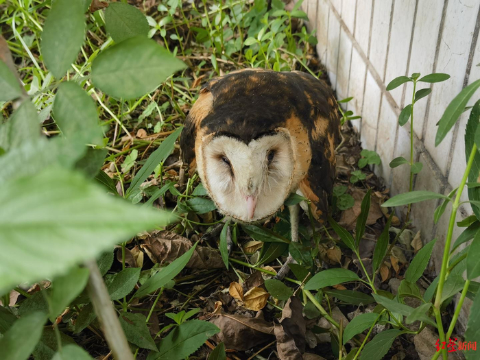 ▲受伤猴面鹰 图据泸县警方“‘扑通’一声把我吓一跳,仔细一看,这‘猫头鹰’咋长着猴脸?”15日清晨7时许,玉蟾派出所保洁员刘孝春打扫院子时,被身后的异常声响吸引,转头一看花坛边蜷缩着一只“怪鸟”。