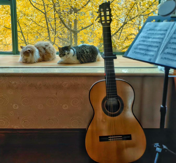 于是,唐敏选择深度学习古典吉他,相较于常见的民谣吉他,古典吉他难度更大,练习起来也更枯燥,“之前作为一种爱好,我平均每天都会抽出一到两个小时的时间来练习,很多时候并不会弹奏完整的曲子,只是不断地重复几个简单的音符,去感受音符的跳动。”