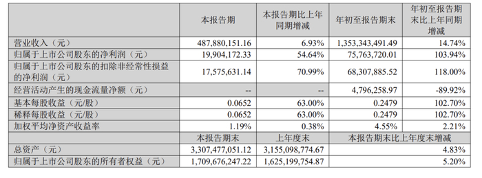 业绩上,西菱动力前三季度实现营收13.53亿元,同比增长14.74%,实现归母净利润7576.37万元,同比增长103.94%。