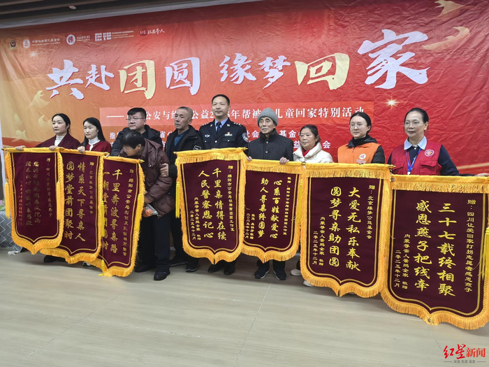 ▲三个团圆家庭的代表送锦旗表示感谢红星新闻记者了解到,从2021年7月绵阳公安成立“胡祥雨工作室”以来,截至2025年底已累计成功帮助1032个离散家庭实现团圆。