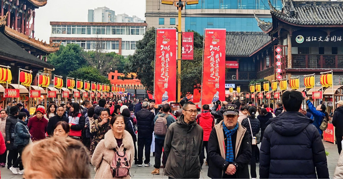 借全国重点网络微短剧《公元1023交子秘笈》在温首发地推的东风,温江区重磅推出“穿越宋代之我在温江逛村糖”主题活动。围绕“来温江·游文庙·逛村糖”的核心,武侠美食、宋代坊市、交子剧本杀、快闪游园、新年音乐会等趣味项目组团上线,用“融合”与“跨界”的巧思,打造出文商旅复合消费的新生态。