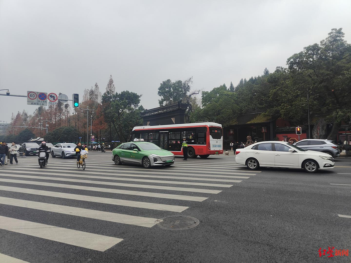 ▲交警路面指挥交通郭战表示,依托“无人机+铁骑”空地一体、协同联动、立体管控的新型警务模式,分局构建了景区各类交通警情“3分钟到场、5分钟处置”的快速响应机制,对武侯祠片区巡逻一次时间从过去30分钟压缩至8分钟,警力投入减少70%,日均劝导机动车乱停放110件,提示网约车、出租车上下客后即停即走145台次,即停即走车位周转率提升56%,有效减少了因排队候客引发的道路拥堵问题,提高了游客游览体验。