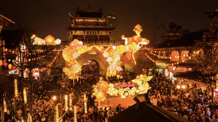 ▲新津区村糖会人头攒动热气腾腾的6米菌汤巨锅边围满尝鲜的市民,非遗打铁花洒下漫天金雨,青梅酒香弥漫在熙攘的人群中……从古镇到街区,从田间到展馆,70余场活动在全城23个区(市)县同步展开,共同拉开了一场充满烟火气与文化味的开年大集。