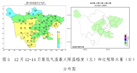 2~5日,全省日平均气温略有下降;川西高原大部、攀西地区东部和北部有阵雪(雨),局部有中到大雪:盆地大部小雨,盆周高海拔地区有雨夹雪或雪。