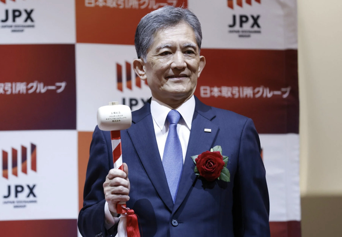 ▲2024年12月18日铠侠总裁早坂信夫出席公司上市仪式“铠侠”2024年12月才在东京证券交易所上市,其客户包括苹果和微软,目前市值约为5.7万亿日元(约合360亿美元)。该公司股价也以压倒性涨幅领涨日本市场。在日本市场超过1600只蓝筹股中,其表现超过了住友制药(涨幅318%,排名第二)。