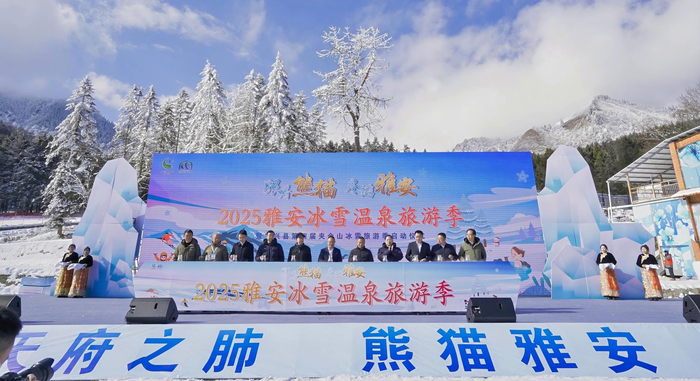 ▲开幕现场启动仪式上,雅安正式发布了冬季冰雪温泉旅游季系列产品及活动,围绕“看熊猫、嬉冰雪、泡温泉、沐暖阳”四大核心场景,构建起了丰富的文旅产品体系。