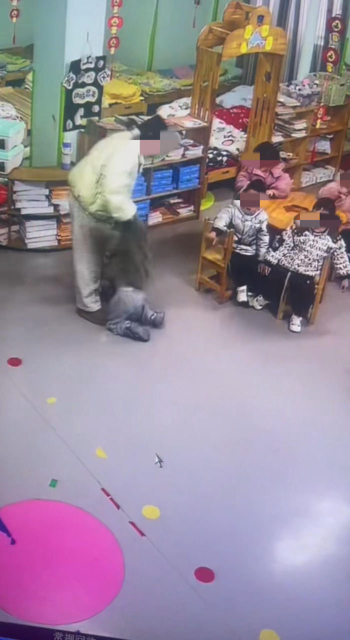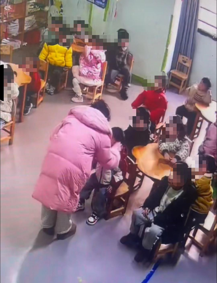 根据张女士此前在社交平台发布的相关监控视频显示,涉事老师曾多次揪住一名男童耳朵,行为激烈时曾致孩子呕吐。此外,该涉事教师还将男童从座位拽起,强行拖到一旁的小板凳上,并反复摇晃其身体。午睡时,又将孩子从凳子上拽起扔到床上。