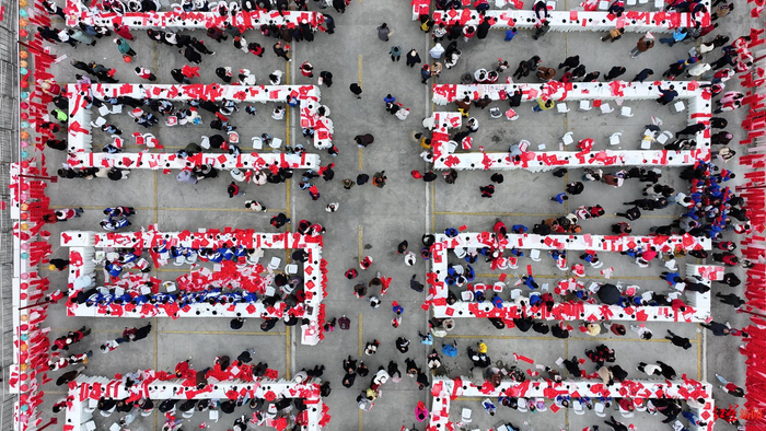 舞台之外,写春联送祝福的现场同样人气爆棚。数百张长桌整齐排开,砚台、红纸、笔墨一应俱全,青白江区五百余名书法家、书法爱好者及中小学生齐聚一堂,共书新春美好。书法家们挥毫泼墨,行楷隶篆各展风姿,“春临大地百花艳,节至人间万象新”等经典春联跃然纸上;孩子们笔法稚嫩却神情专注,一笔一划写下对新年的纯真期许。本次活动共书写并赠送春联、“福”字超五千幅,吸引逾万人次市民游客参与。
