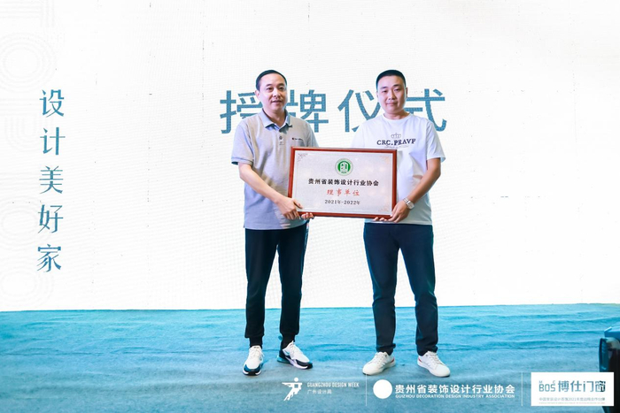 接着我们迎来了一大重头戏,贵州省装饰设计行业协会执行秘书长刘平先生为博仕门窗毕节负责人吴平均进行了贵州省装饰设计行业理事授牌仪式。旨在加强贵州各地设计力量的联系,整合设计力量,决战广州设计周。