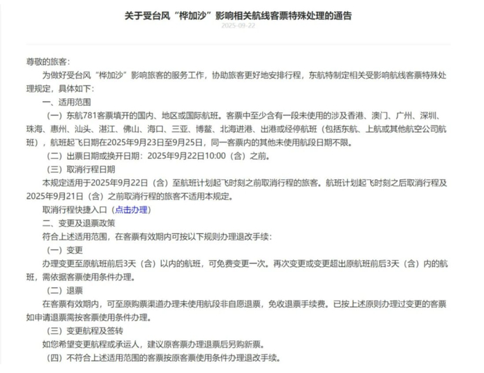 在此之前,多家机场发布了停航通知。深圳机场将于9月23日20时起暂停航班运行,恢复运行时间将根据台风动态和影响情况而,深圳机场码头在9月21日至9月25日所有船班也停航,旅客可在港口发布有关停航通知之日起30个自然日内,联系购票平台办理全额退票退款。