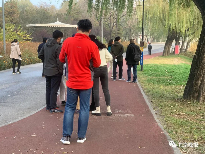 朝阳公园,散步的人堵住健步道