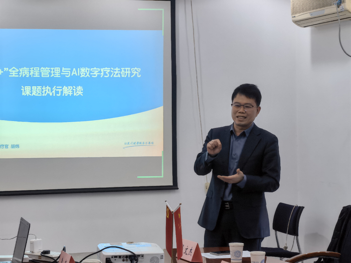 课题组专家委员会副主任胡炜博士阐述了课题研究理念,课题将利用数字技术将医疗服务的边界充分延伸至社区和家庭,面向患者提供全病程的健康管理服务,提升了医疗服务质量和医疗资源的可及性、流动性,对于缓解医疗资源短缺、降低医疗服务成本、优化升级医疗组织形式和医疗效率都具有重大意义。微脉作为国内首批获得国际数字疗法协会(DTA)认证的企业,将全程提供技术支持,通过现有成熟的技术生态及运营生态,助力医院科研达成,破解管理创新发展之困。