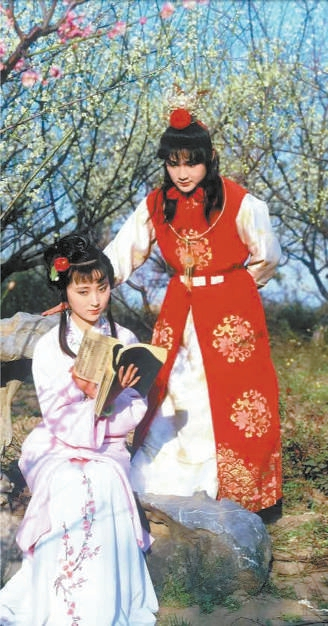 共读西厢 李耀宗 摄《红楼梦》中的丫头等下人们常用的服装面料是青缎,“青缎”即黑缎。如第三回中,一个小丫头就穿着“红绫袄青缎掐牙背心”。“掐牙”是在衣服的滚边内再加一条极细的滚条。“背心”是没有袖子的上衣,相当于今天的坎肩。古时婢女的衣服多为青色,唐代白居易的《懒放二首,呈刘梦得、吴方之》云:“青衣报平旦,呼我起盥栉。”
