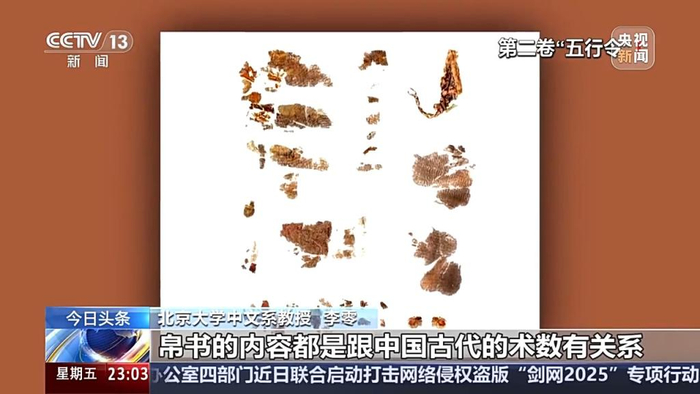北京大学中文系教授 李零:恰好这个子弹库帛书两种时令都有,这不是很好嘛。子弹库帛书第二卷虽然是残片,但是也非常宝贵。