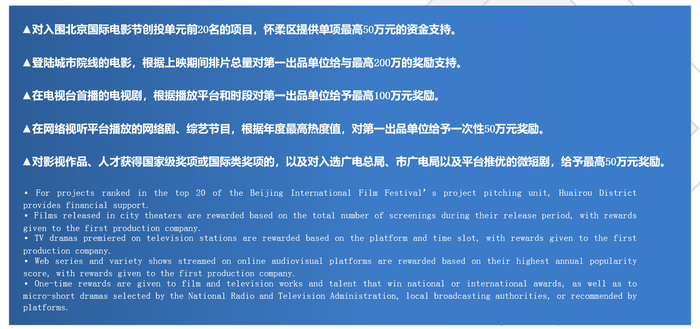 今年5月,怀柔区又出台了《促进文化及相关产业高质量发展若干措施》,涵盖六大类支持内容,单项扶持额度最高可达300万元,从企业成长、作品奖励、技术创新到文化空间打造与消费新场景布局,构建起一个全方位、系统性的产业扶持生态。