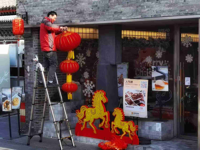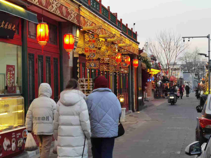 白塔寺旁的小巷里挂起了红灯笼,年味浓浓。