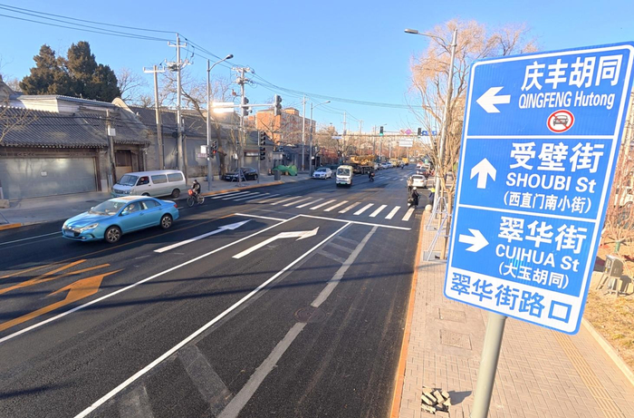 去往二环主路,原先需绕行15分钟,现在3分钟直达,道路南侧的胡同步行区域车流也锐减。