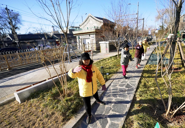 受壁街项目还着重改善了道路周边的休憩空间。项目开工后,道路沿线同步建设3处口袋公园和多块小微绿地,融合灰砖、绿植等元素,织补白塔寺北缘风貌。