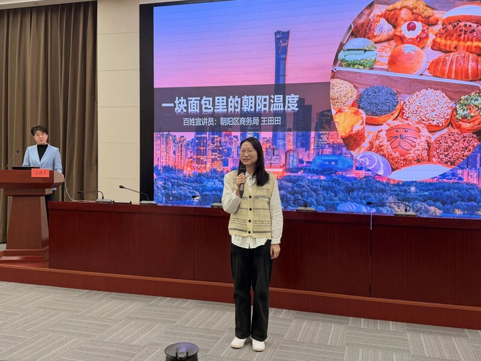 朝阳区宣讲团以《消费活力“京”彩绽放》为题,从消费新趋势入手,结合“一块面包里的朝阳温度”故事和歌曲《熠熠朝阳》,展现近年来朝阳在消费场景、消费供给、支付方式等方面的创新探索,生动阐释建设国际消费中心城市的北京实践。