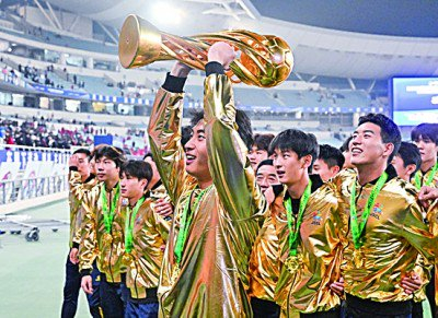 2025江苏省城市足球联赛冠军泰州队在夺冠后向球迷致意。新华社发