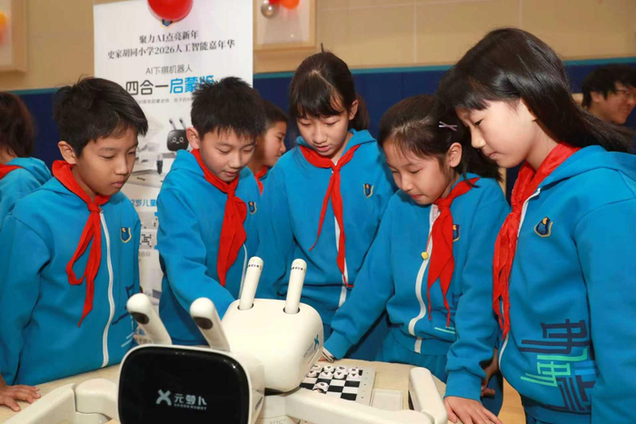 和AI象棋机器人对弈,挑战AI成语接龙,将自己的声音合成为科学家霍金的声音模拟问答……12月29日,北京市东城区史家胡同小学为学生们准备了一份特别的新年礼物——“AI嘉年华”活动。20余个前沿AI项目登场,像一个个神秘的科技宝藏,让学生们近距离领略到AI技术的魅力。