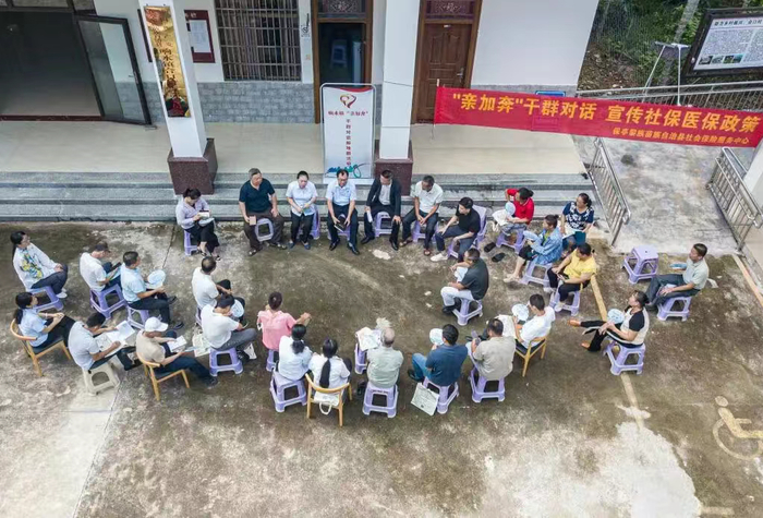 7月16日,在海南省保亭黎族苗族自治县响水镇合口村拍摄的“亲加奔——干群对话解难题”活动现场(无人机照片)。新华社记者蒲晓旭 摄