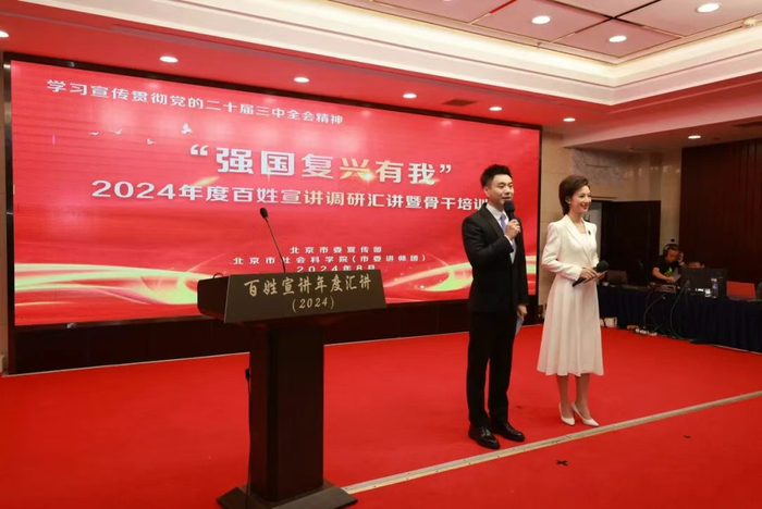创新“百姓宣讲+”模式开展驻场宣讲。学习贯彻“习近平文化思想”百姓宣讲团采用“百姓故事+文化展示+文艺表演”,在2024北京文化论坛平行论坛惊艳亮相,在故宫博物院、大运河博物馆、香山纪念馆、孔庙和国子监博物馆、颐和园、北海等文化标志地巡讲;北京冬奥精神宣讲团、首都红领巾巡讲团创新采取“宣讲+展览”“宣讲+体验”“宣讲+问答”的多维宣讲形式,在北京奥运博物馆、北京青年宫常态化驻场宣讲,打造“可触摸的精神课堂”。