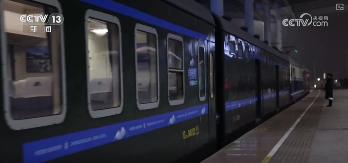 12月31日23时40分,K9765次旅客列车从乌鲁木齐站启程。300多名来自全国各地的旅客乘坐专列,一路向北,经过9个多小时,便可抵达阿勒泰。