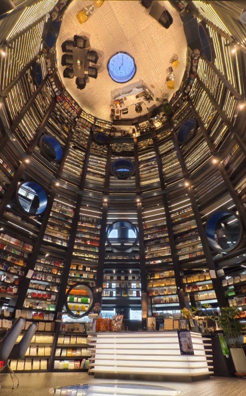 好的空间设计,能让人感受到时空的张力。无界书房把时空哲思和虫洞意象变成了能摸得着、感受得到的阅读氛围。在这里,科学的严谨和文学的浪漫撞个满怀。“设计灵感源自《星际穿越》中对时空与探索的诠释。”无界书房设计师米俊仁说,“我不想把书店做成千篇一律的样子,更想借着灵感造个穿越小天地,让大家在书香里偷得片刻自在,这既贴合怀柔科学城勇于探索创新的闯劲儿,也让书房多份打动人心的温度。”