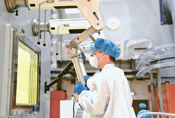 图为2025年10月24日,在中国科学院上海应用物理研究所武威园区,科研人员在2兆瓦液态燃料钍基熔盐实验堆加料—取样热室工作。 新华社记者 张建松/摄