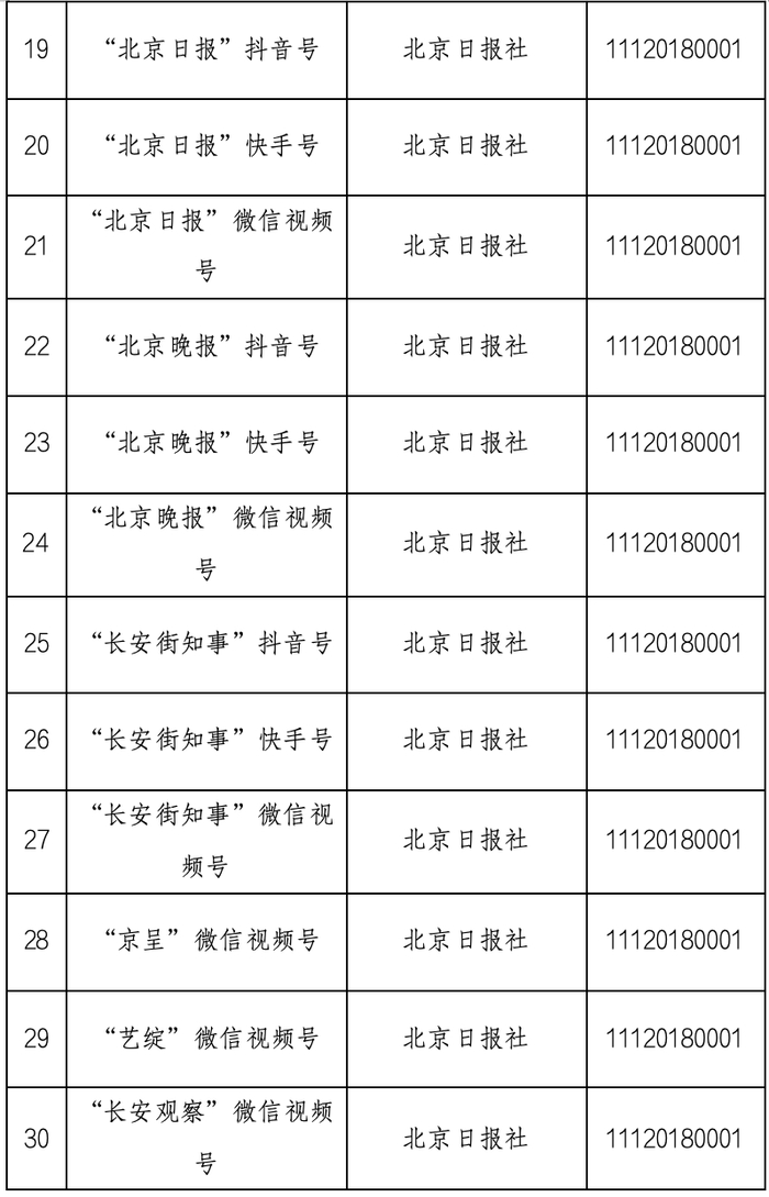 (二)北京市获得互联网新闻信息服务许可的应用程序名单(共30个)