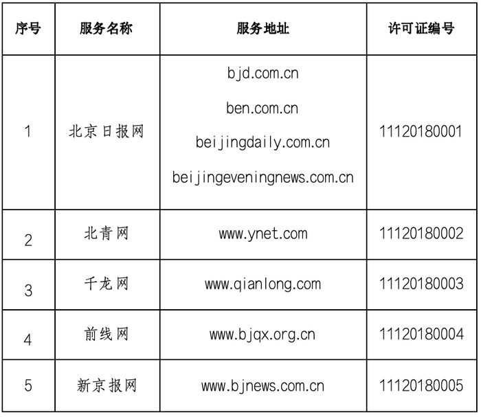 (一)北京市获得互联网新闻信息服务许可的互联网站名单(共18个)