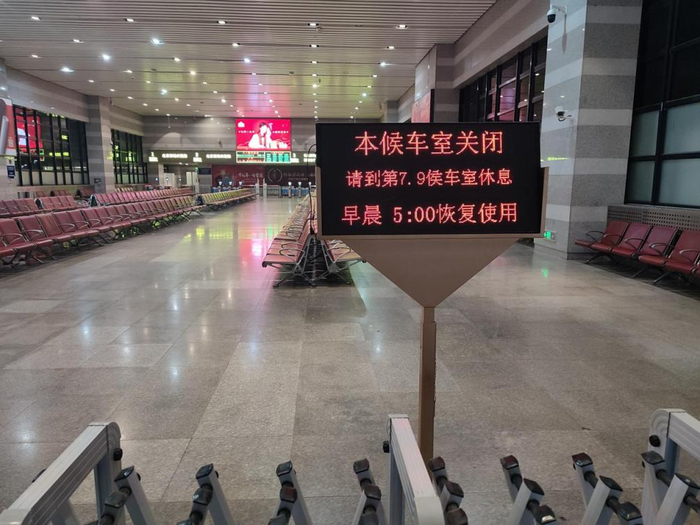 北京丰台站工作人员告诉记者,候车大厅确实没有可以躺着的地方,但是整个候车大厅夜间不闭站,旅客可以进站休息。