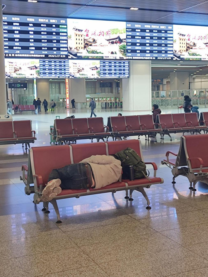 “我经常来丰台站,候车大厅基本上都走了一遍,没有能躺着休息的地方。”旅客老陈说,“我觉得如果有分割出来的区域,能躺会儿,或者至少能把腿伸直,还是很好的,大家有需求。”
