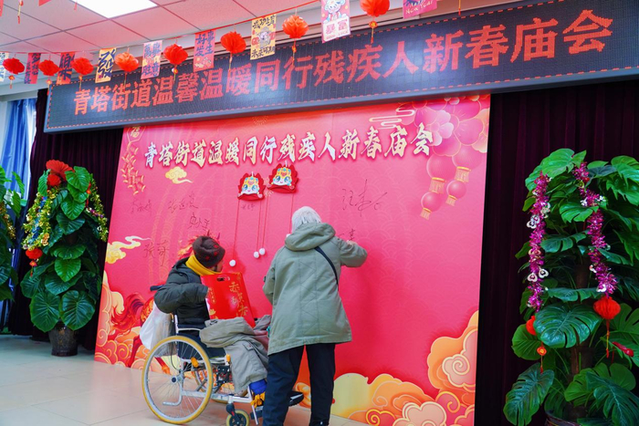 活动现场设置了新春主题合影背景墙,残疾人朋友们纷纷在此签名、拍照,定格团聚的温馨时刻,也成为值得珍藏的美好记忆。