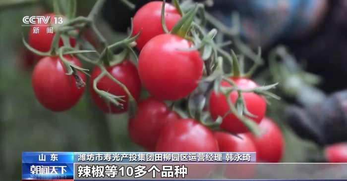 山东省潍坊市寿光产投集团田柳园区运营经理 韩永琦:目前园区有160多个大棚,主要种植西红柿、黄瓜、辣椒等10多个品种,目前的日采摘量基本上在10万斤左右,正好属于大量上市期。