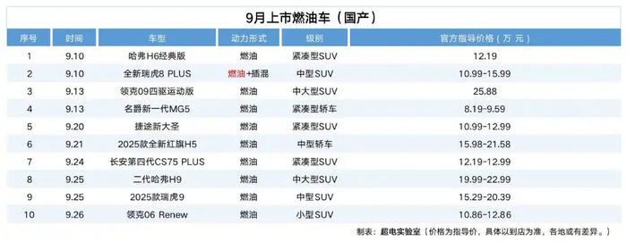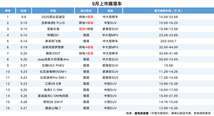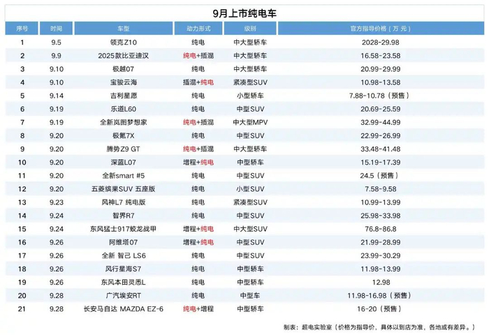 据超电实验室不完全统计,9月份上市或开启预售的新车,多达54款,赶上“黄道吉日”,一天内能上市七八款新车。