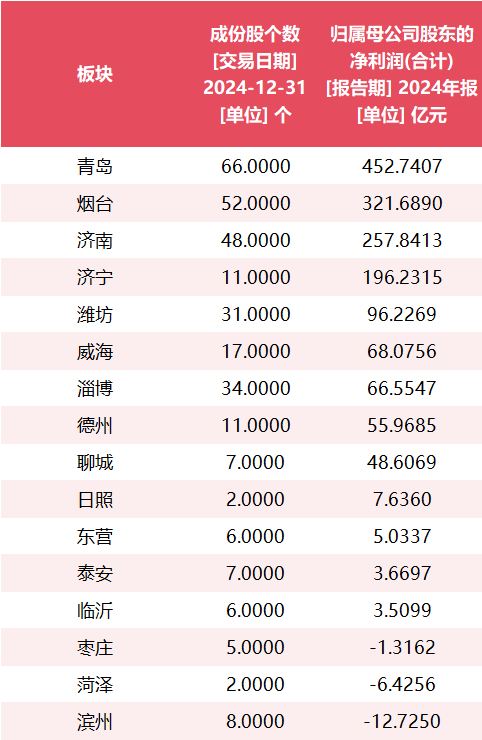 总体看来,2024年盈利过亿元的鲁股达到140只,盈利超10亿元的鲁股有33只。