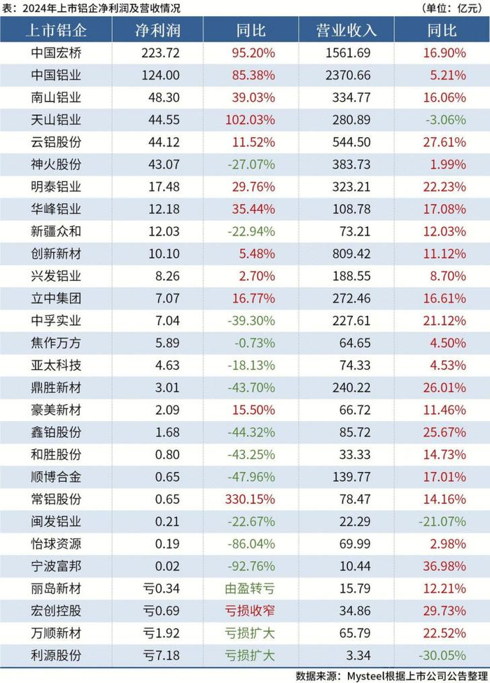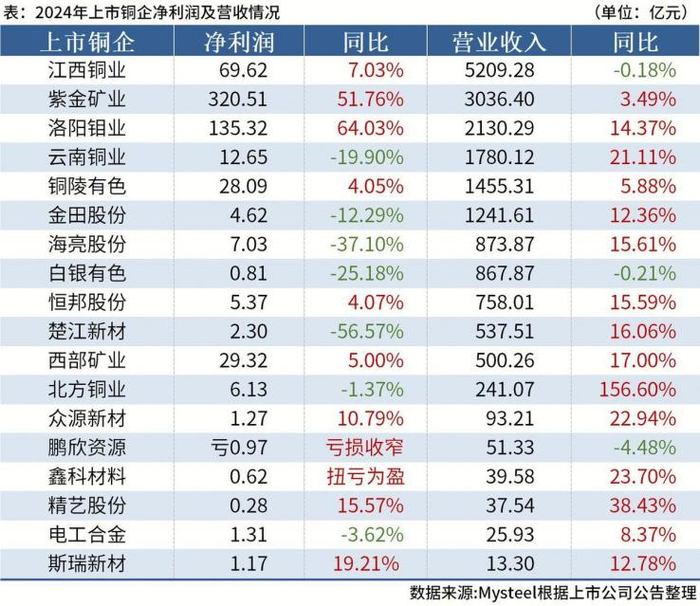 头部铜铝企业2024年业绩表现亮眼