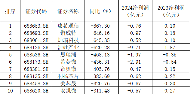 首先来看科创板,数据显示科创板2024年净利润总和为431亿元,而2023年净利润总和为739亿元,2024年整体净利润同比下滑达到了42%。