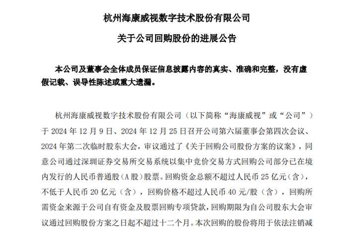 6月3日,海康威视发布了自2024年12月以来的回购股份进展公告。