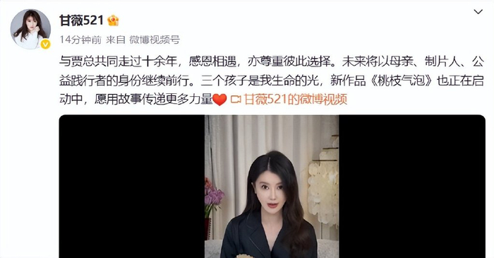 但前妻甘薇的离婚官宣像记闷棍——5月14日她发文称“丧偶式婚姻撑不下去了”,反手撇清“40亿索赔”传闻。