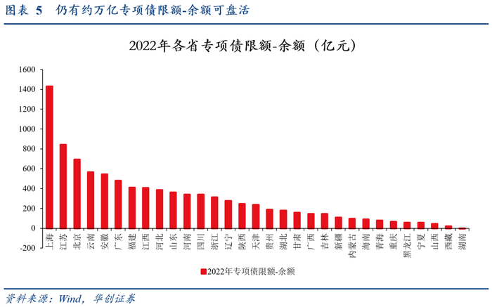 1、专项债限额,重点支持基建。若今年3.8万亿新增限额不够,可再次盘活专项债限额-余额,理论上限约1万亿(图5)。参考去年经验,实际或可盘活5000亿。
