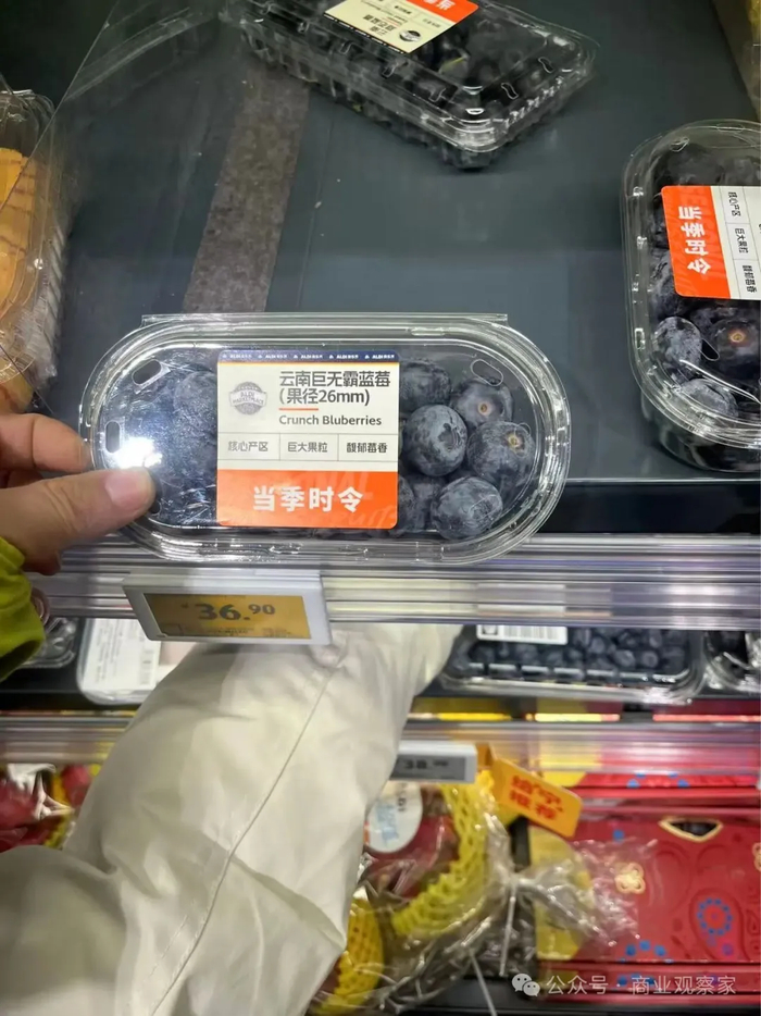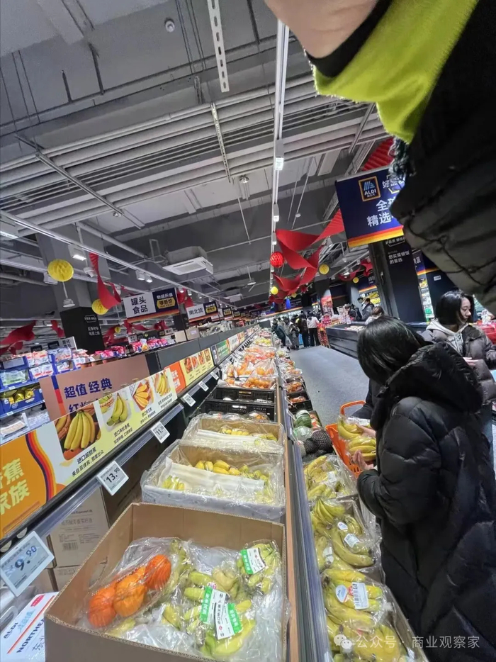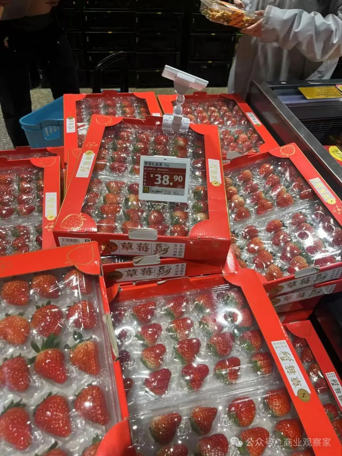 在水果区,有消费者对《商业观察家》称,奥乐齐的红颜草莓价格只有盒马60%,不少消费者还在现场微信语音留言通知亲朋好友,让他们赶快来奥乐齐购物。