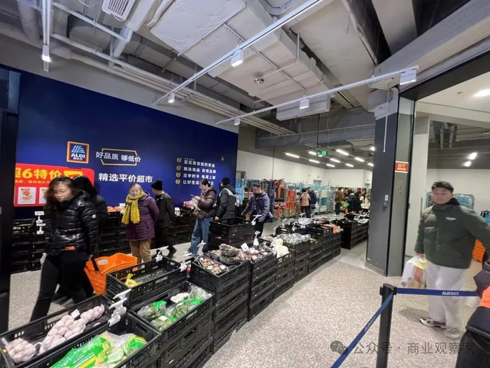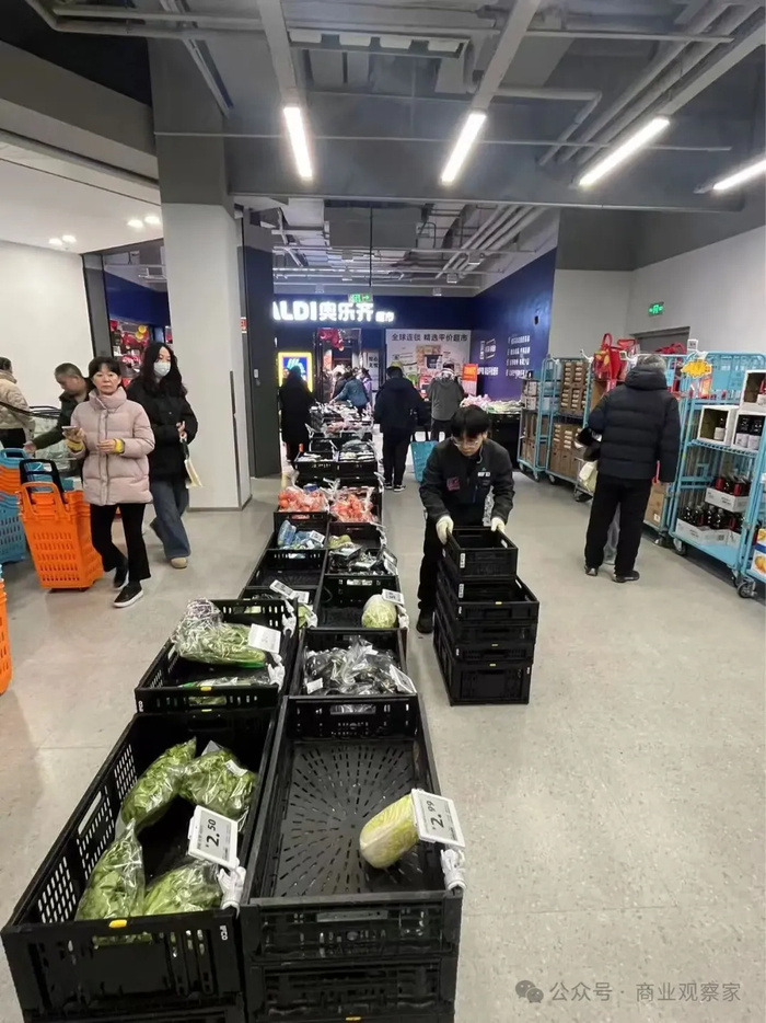 所以,奥乐齐做中国市场的思路,可能还是想“还原”中国市集的热闹、充满烟火气的氛围感,并满足中国消费者的固有市集选购习惯。市集动线,在消费端能产生“逛”起来的感觉与氛围感。