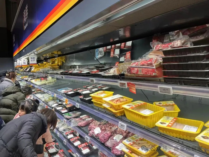 在水产区,奥乐奇巧刻广场店的三文鱼,在《商业观察家》探店当天不到17点就已经卖空没货了,整个三文鱼都“脱销”。有消费者对《商业观察家》称,在她的记忆里,奥乐齐的三文鱼商品价格也是盒马鲜生的6折。