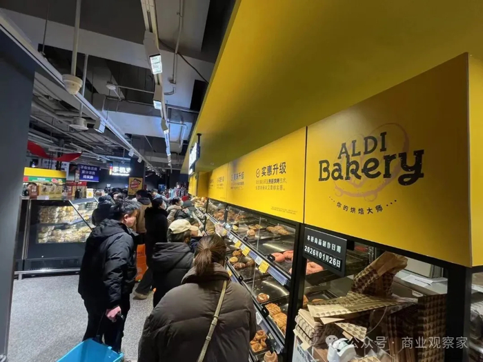 现烤及烘焙产品,现在则是奥乐齐的强项,奥乐齐巧刻广场店烘焙区面积很大,成为了奥乐齐差异化的重要支柱。目前,奥乐齐的烘焙品项丰富度已经不输社区面包店了,价格比社区面包店还便宜。整体来说,奥乐齐中国的烘焙业务水平,被一些市场人士认为已经超过奥乐齐全球任何一个国家的烘焙水准了。奥乐齐中国的烘焙是越做越好,越做越强势了。