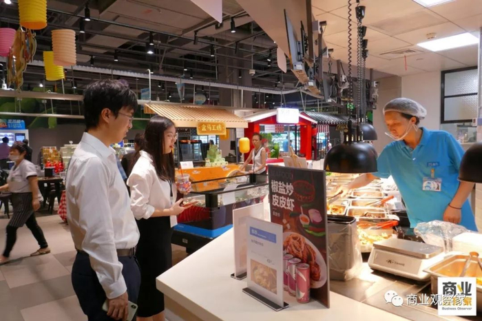 现在有零售商把熟食的就餐场景搬到了卖场里面。以前海鲜卖的都是比较基础的,现在很多都卖了进口的高档海鲜,还提供了加工烹饪的操作。
