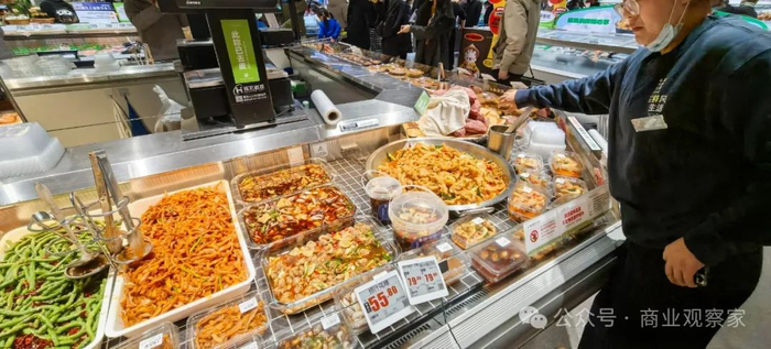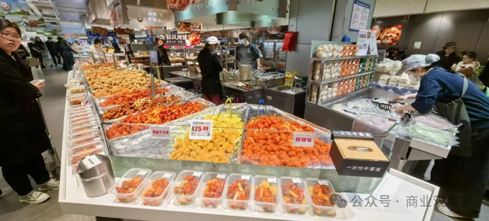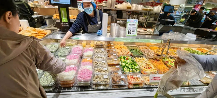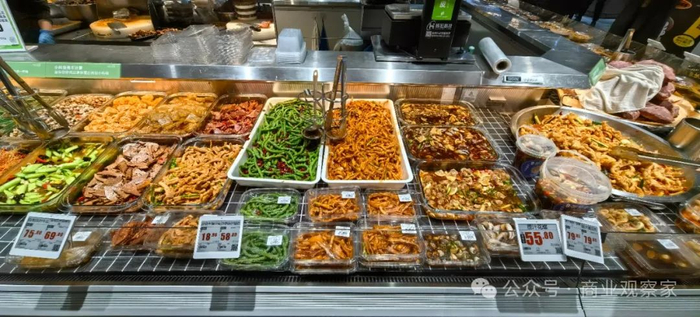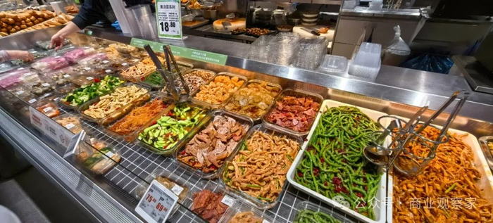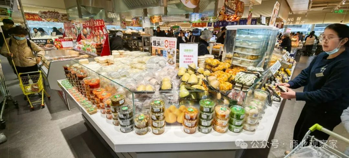 而当下中国实体超市行业的一个最大时机机会与发展方向,就是基于工业化生产的熟食来打造超市烟火气的食品馆业务,正处于蓬勃而发的状态。