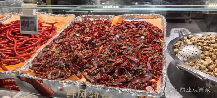 而除了王卫,《商业观察家》了解到的情况是,还有大批的区域超市零售商近期都纷纷去了鲜风生活“驻店”学习,尤其是这些公司的熟食等3R部门(即热即食即烹),几乎是整个团队整个团队前往,他们会拍下鲜风生活熟食陈列及营运图片,然后,试图一比一“复刻”鲜风生活的熟食陈列与营运,再力图将鲜风生活的熟食经营落地在自己的门店中。